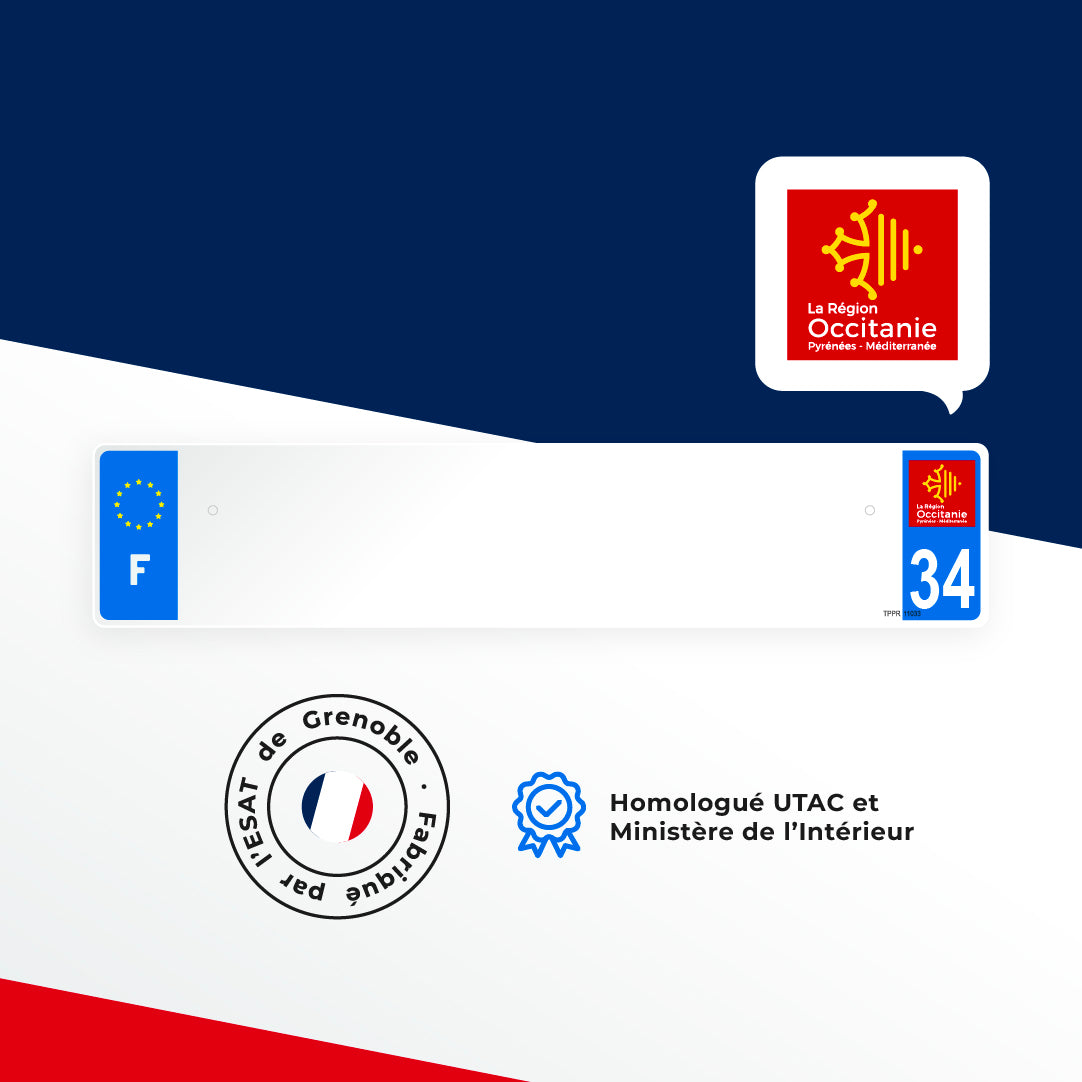 Logo de la région et numéro de département sur la plaque d’immatriculation