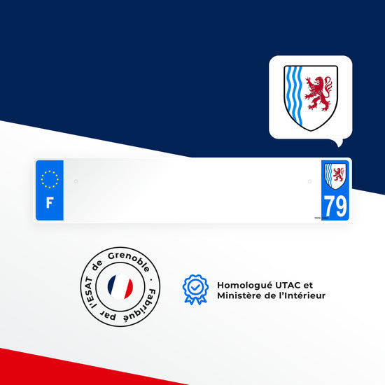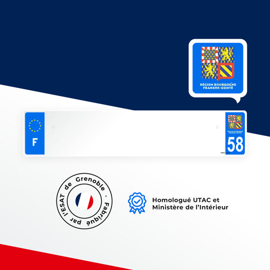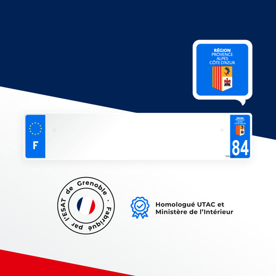 Le numéro du département choisi s’accompagne automatiquement du logo de la région associée. Si vous souhaitez changer de logo ou bien de numéro, vous devez impérativement commander une nouvelle plaque.
